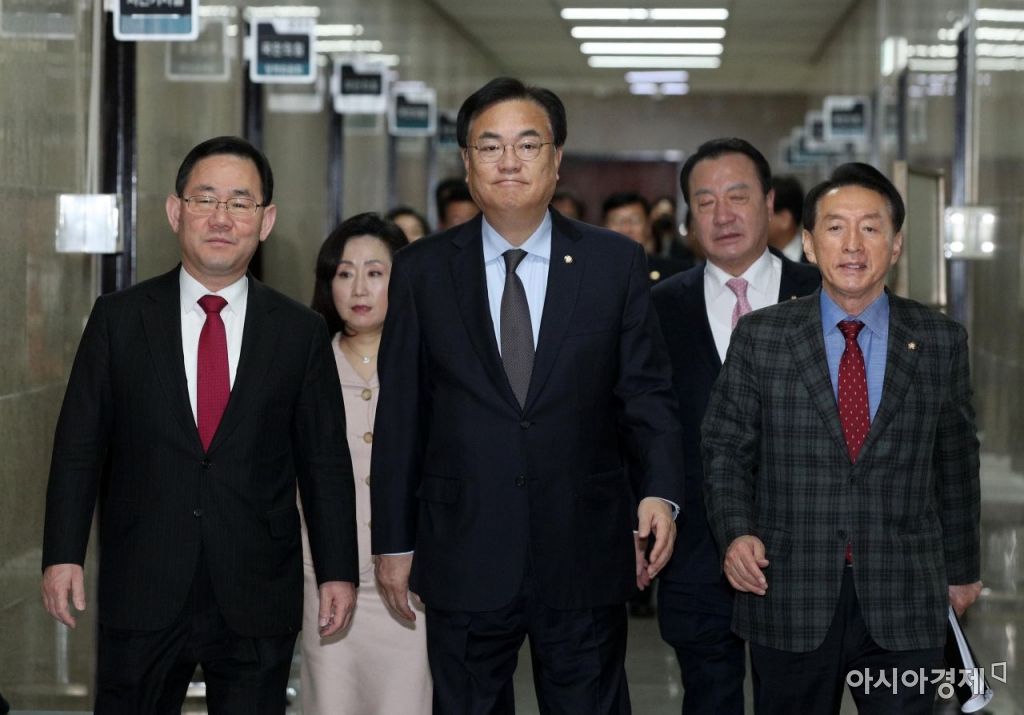 정진석 국민의힘 비대위원장 주호영 원내대표 등 당 지도부가 9일 서울 여의도 국회에서 열린 비상대책위원회의에 참석하고 있다. 사진=김현민 기자 kimhyun81@