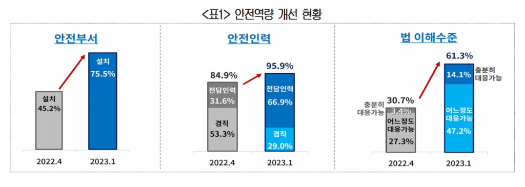 중대재해처벌법 시행 이후 안전역량 개선 현황 [이미지출처=대한상의]