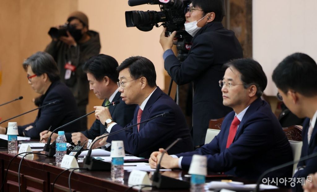 신상진 성남시장이 9일 정부서울청사에서 열린 1기 신도시 지자체장 간담회에 참석, 모두발언을 하고 있다. 사진=윤동주 기자 doso7@