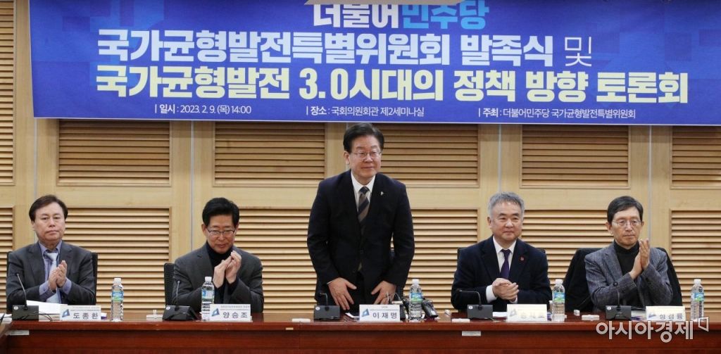 이재명 더불어민주당 대표가 9일 서울 여의도 국회 의원회관에서 열린 국가균형발전특별위원회 발족식 및 정책 방향 토론회에 참석해 인사하고 있다. 사진=김현민 기자 kimhyun81@