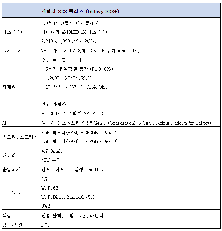단점을 꼽으라면 스펙 측면에서 울트라와 기본 모델 사이 애매한 포지셔닝이다. 최상위 스펙인 울트라와 비교해 카메라 성능, 디스플레이 크기, S펜 유무, 배터리 용량 등에서 큰 차이를 보이지만, S23 기본 모델과 비교하면 화면 크기와 무게 등을 제외하고는 성능에서 큰 차이가 없기 때문이다.