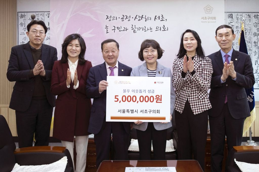 [아시아경제 박종일 기자] 서초구의회(의장 오세철)는 10일 사회복지공동모금회에 불우 이웃돕기 성금을 전달하며 나눔 문화 실천에 동참했다.