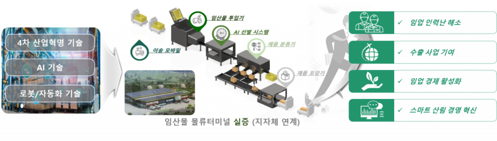 스마트 산림경영 혁신성장 기술개발은 포항시에 건립 중인 경상권역 임산물 물류터미널을 대상으로 AI기반 임산물 자동화 로봇기술 적용 및 현장 실증을 추진해 임산물의 유통·물류 자동화를 구현하는 사업이다.