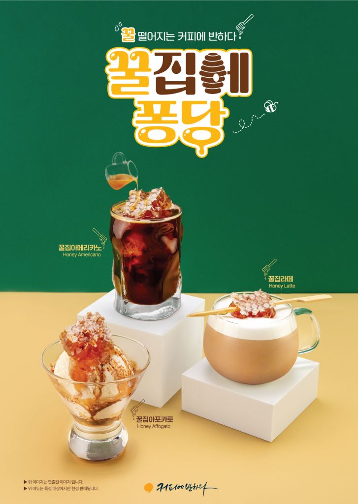 아메리카노 위에 벌집꿀이 통째로 올라간 '꿀집 아메리카노', 부드러운 라떼에 벌집꿀이 올라가 고소함과 달콤함을 느낄 수 있는 '꿀집 라떼', 아이스크림에 에스프레소를 얹은 아포카토에 벌집꿀이 더해진 '꿀집 아포카토'까지 총 3종이다.