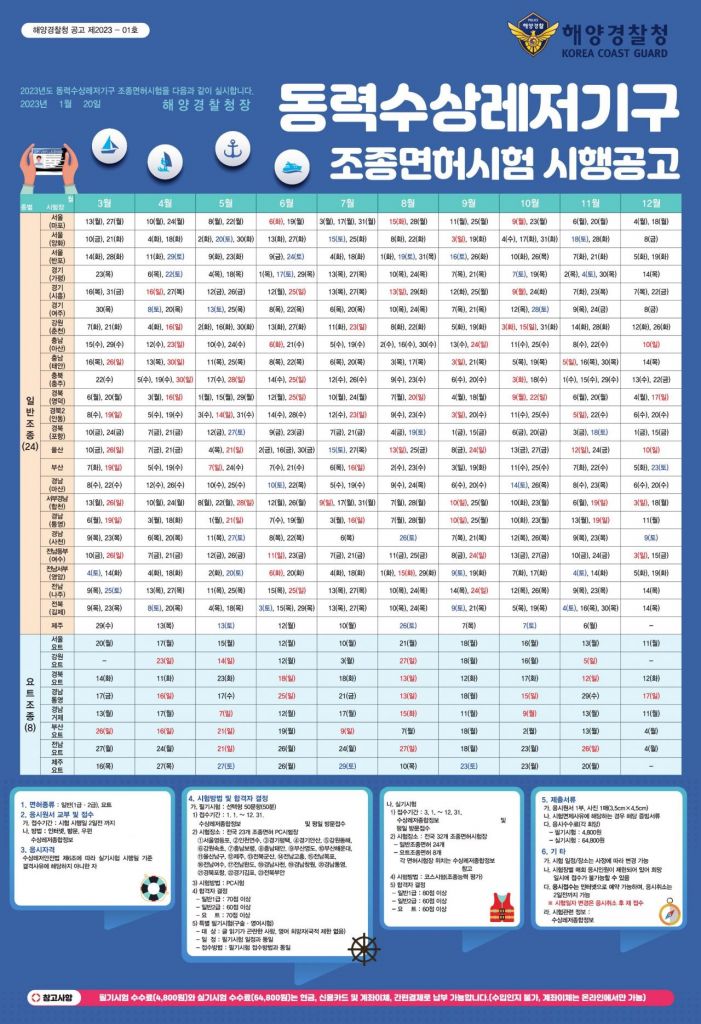 2023년 동력수상레저기구 조종면허시험 시행공고[사진제공=제주해경]