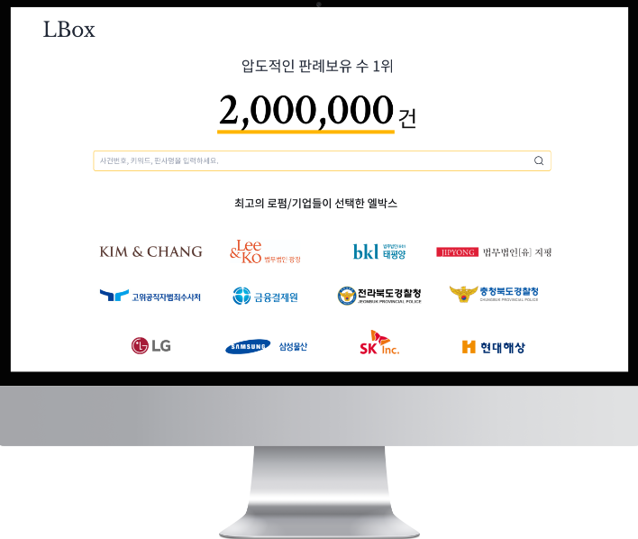 엘박스는 국내 최다인 총 200만 건의 판례를 등록한 데이터베이스(DB)를 보유하고 있다. 여기에 인공지능(AI) 기술을 활용한 검색 기술을 적용했다. 김앤장, 광장, 태평양 등 국내 대형 로펌들을 비롯해 국내 전체 변호사(3만명)의 3분의 1이 넘는 총 1만2000명의 변호사 사용자를 확보했다. LG, SK, 삼성물산을 비롯한 대기업과 고위공직자범죄수사처, 금융결제원 등 공공기관 또한 주요 고객으로 보유하고 있다.