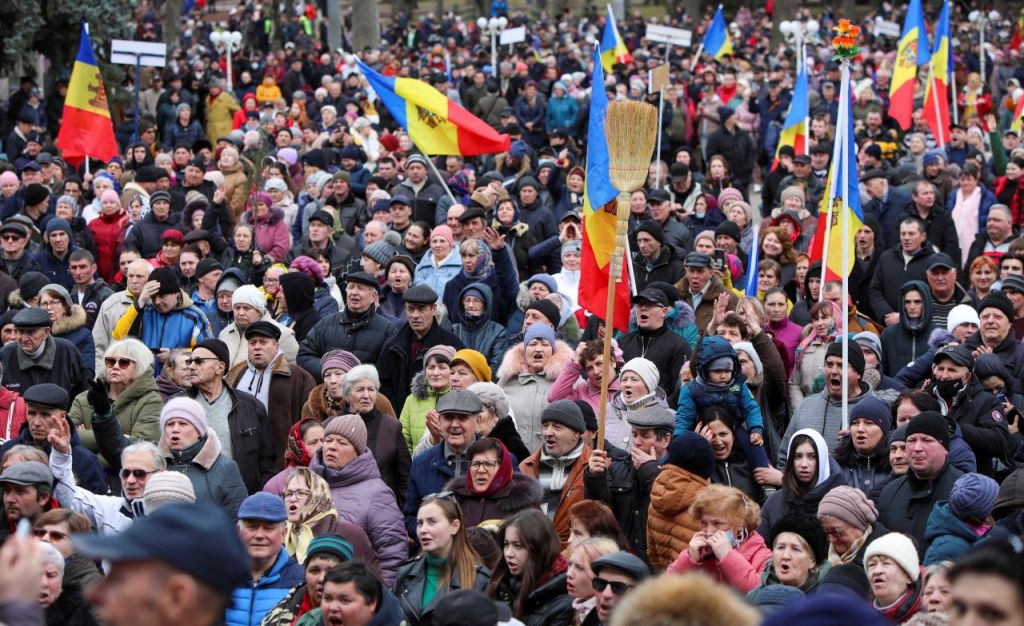 지난 19일 몰도바 수도 키시나우에서 최근 급격한 전기세 급등에 분노한 시민들이 몰려와 반정부 시위에 참여하고 있다. 키시나우=로이터·연합뉴스