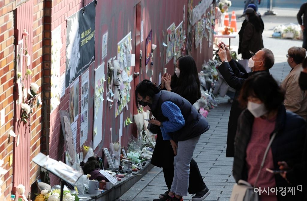 17일 서울 용산구 이태원 참사 현장에 추모객들의 발길이 이어지고 있다./김현민 기자 kimhyun81@