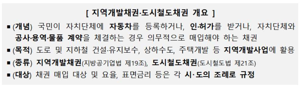 한편, 행정안전부와 시·도는 올해 1월부터 지역개발채권·도시철도채권의 표면금리를 1.05%(서울 1%)에서 2.5%로 인상하였다.