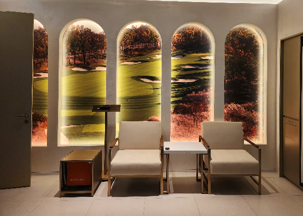 신세계그룹이 운영하는 트리니티CC 16번홀 전경을 옮겨 놓은 벽면 모습. [사진=이서희 기자]