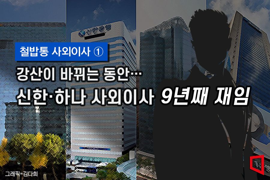 하나금융지주도 남는 사외이사가 더 많다. 총 8명 중 떠나는 사람은 2명 뿐이다. 9년째에 접어드는 허윤 이사 외에도 5년 임기를 채운 3명이 머물기로 결정되면서 6년차가 된다. 이 외에도 3년·2년차가 되는 사람이 각각 1명씩 있다. 지주 말고도 신한은행 혹은 하나은행의 장기 재임 사외이사들 중 연임하는 이들이 있으면 '철밥통 사외이사'들이 추가로 나올 수 있다.