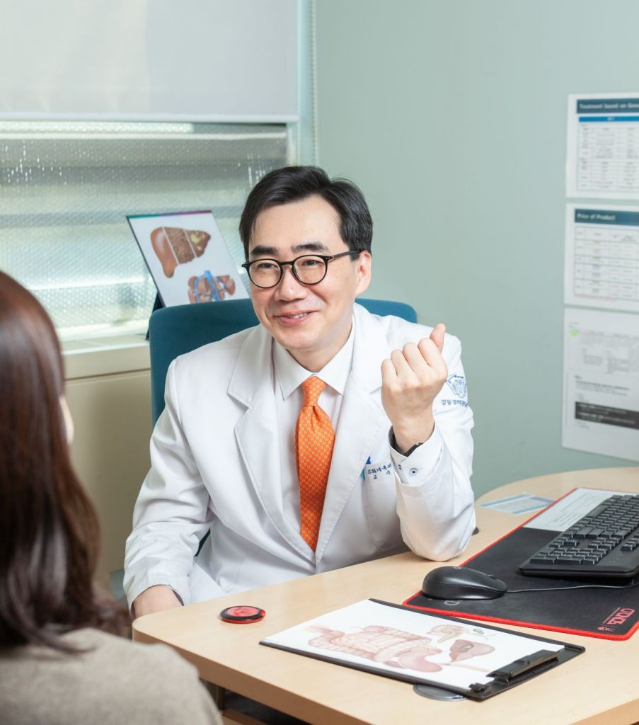 전정원 강동경희대병원 소화기내과 교수가 소화성궤양에 대해 설명하고 있다.[사진제공=강동경희대병원]