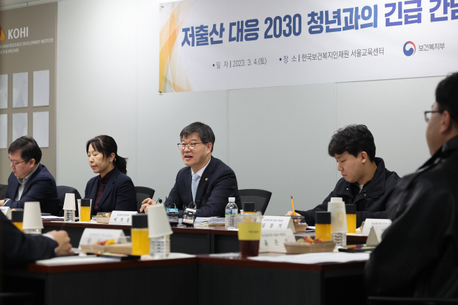 복지부는 4일 오후 한국보건복지인재원 서울교육센터에서 복지부 2030 청년자문단 15명과 함께 '저출산 대응 2030 청년 긴급 간담회'를 열었다.