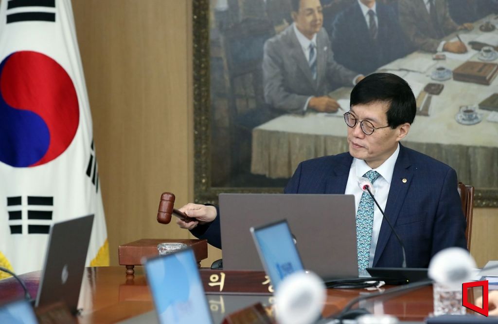 이창용 한국은행 총재가 23일 서울 중구 한국은행에서 열린 금융통화위원회 정기회의에서 의사봉을 두드리고 있다. 사진=사진공동취재단