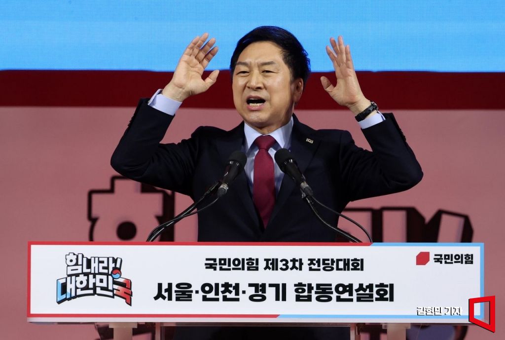 김기현 국민의힘 당 대표 후보가 지난 2일 경기도 고양시 고양체육관에서 열린 제3차 전당대회 서울인천경기 합동연설회에서 정견발표를 하고 있다. 사진=김현민 기자 kimhyun81@