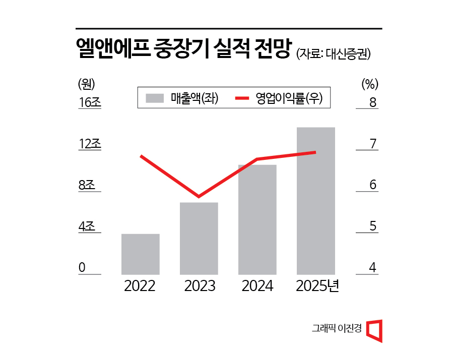 양극재 개발·양산에 성공한 이후 엘앤에프의 실적은 급성장 가도를 달리고 있다. 2019년에는 3133억원의 매출액을 올렸지만 영업적자 77억원을 기록했다. 2020년부터 곧바로 흑자로 돌아섰다. 2020년 3561억원이었던 매출은 2021년 9708억원, 2022년 3조8838억원으로 급증했다. 같은 기간 영업이익 역시 15억원에서 443억원, 2662억원으로 불어났다.