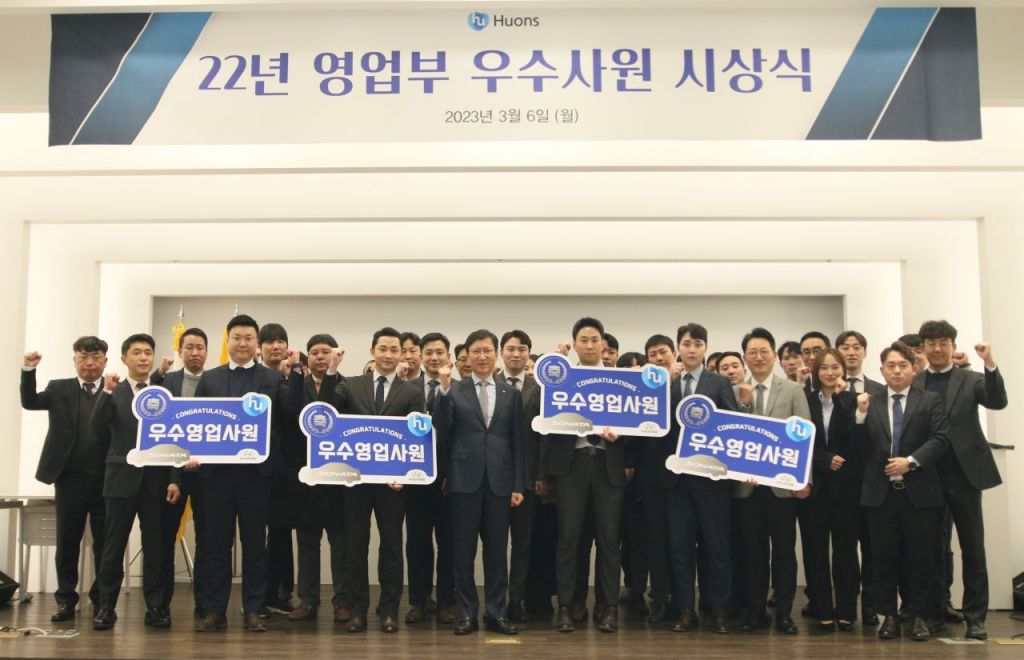 휴온스는 6일 성남 판교 본사에서 '2022년 휴온스 영업부 우수사원 시상식'을 열었다고 8일 밝혔다. 시상식에는 윤상배 휴온스 대표와 우수 영업사원 34명이 참석했다.
