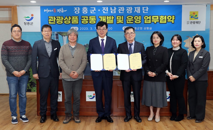 전남관광재단과 관광상품 공동개발과 운영 활성화를 위해 업무협약을 체결했다. [사진제공=장흥군]