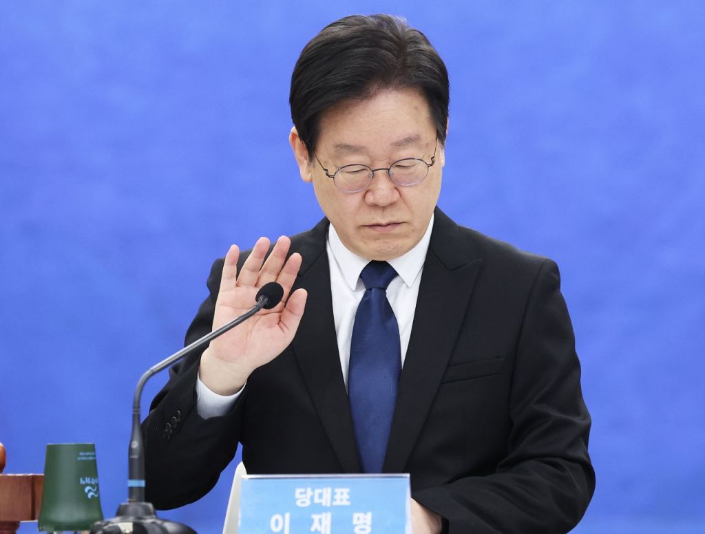 이재명 더불어민주당 대표가 10일 오전 경기도 수원시 경기도의회에서 열린 현장 최고위원회에서 마이크를 점검하고 있다. 사진제공=연합뉴스