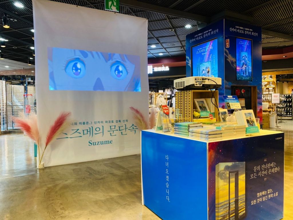 현재 영풍문고에서는 신카이 마코토 감독 기획전이 열리고 있다. ‘스즈메의 문단속’을 포함해 ‘날씨의 아이', ‘너의 이름은', ‘언어의 정원’ 등 감독의 대표작을 종각종로본점에서 진행하고 있다. 해당 도서 기획코너를 조성했고, 예고편 상영과 더불어 영화티켓 증정 이벤트를 진행 중이다.