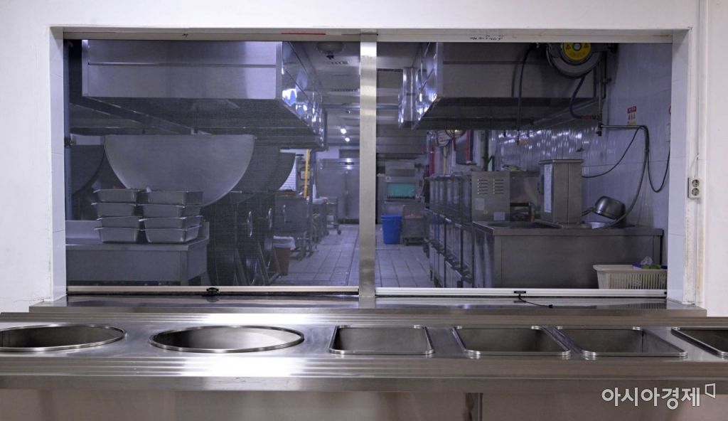 학교비정규직노동자들이 정규직과 임금 차별 해소 등을 요구하며 총파업에 돌입한 가운데 25일 서울시 성동구의 한 중학교 급식실이 텅 비어 있다./사진공동취재단