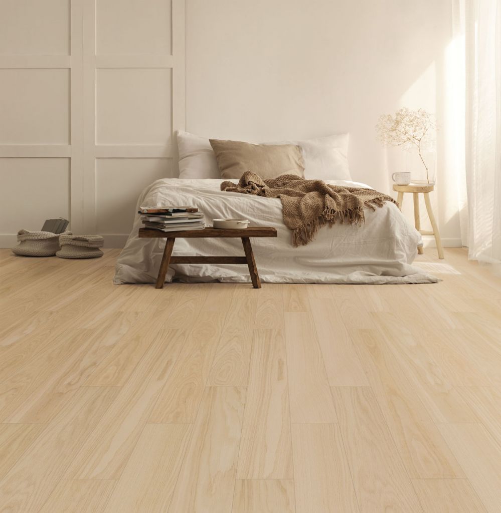 규격은 폭 143㎜, 길이 1205㎜, 두께 7㎜로 총 8가지 패턴을 선보인다. 오크 베이지, 티크 오리진 등 목재 고유의 자연스러움과 고급스러움을 살린 색상과 패턴으로 구성돼 소비자의 취향에 맞는 공간 연출이 가능하다.
