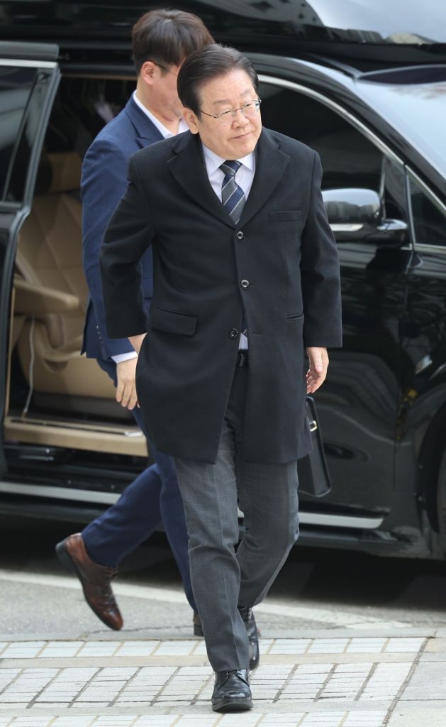 지난 대선 과정에서 허위 발언을 한 혐의로 기소된 더불어민주당 이재명 대표가 17일 오전 서울 서초구 중앙지법에서 열린 공직선거법 위반 사건 2회 공판에 출석하고 있다. [이미지출처=연합뉴스]