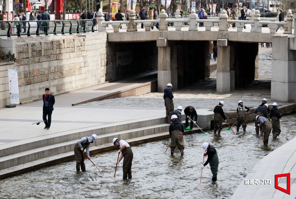 [포토] 청계천, 새봄맞이 대청소