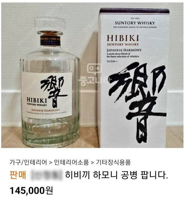 한정판 고급 술의 '공병'을 파는 광고가 올라와 누리꾼의 주목을 받았다. [이미지출처=중고거래 플랫폼]