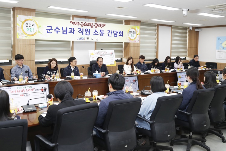 김희수 진도군수가 최일선에서 행정을 담당하는 7급 이하 MZ 공무원들을 격려하고 애로사항들을 청취하기 위해 지난 20일 소통 간담회를 개최했다.
