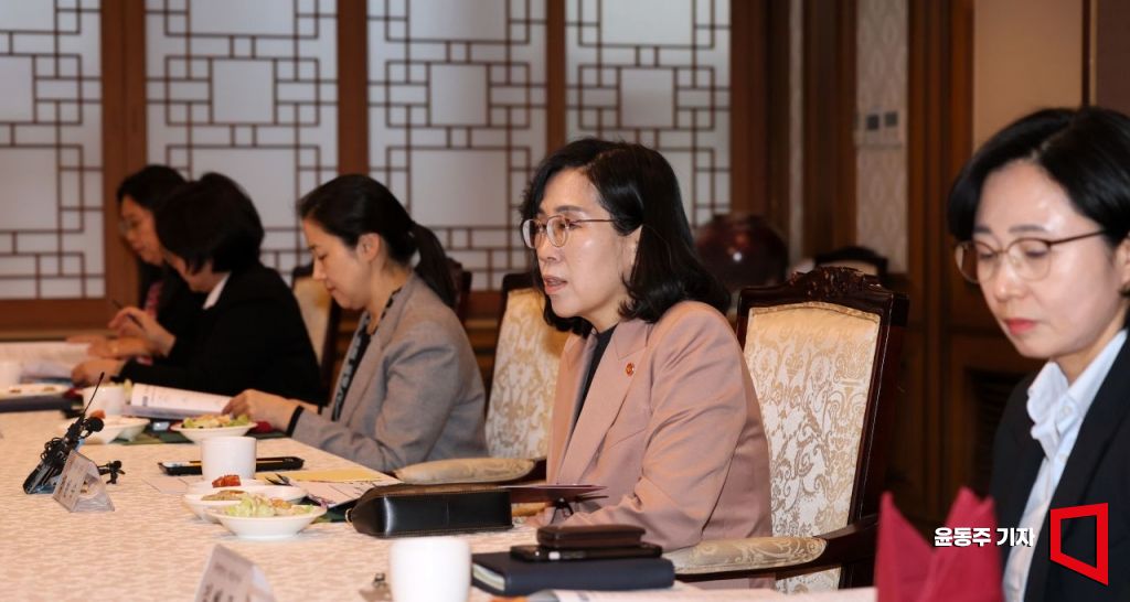 김현숙 여성가족부 장관이 21일 서울 종로구 정부서울청사에서 열린 민간기업 여성 임원들과의 간담회에 참석, 인사말을 하고 있다. 이날 간담회에는 박정림 KB증권 대표, 김소영 CJ제일제당 부사장, 김혜주 롯데멤버스 대표, 김은정 SK SUPEX추구협의회 부사장, 박은영 대상 총괄중역, 김수진 세아베스틸지주 이사, 이영진 11번가 마케팅담당이 참석했다. 사진=윤동주 기자 doso7@