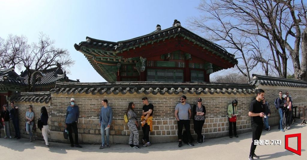 21일 서울 종로구 창덕궁을 찾은 외국인 관광객들이 봄 햇살을 피하고 있다. 이날 서울 낮 최고기온은 20도 가까이 오르면서 예년때보다 7도가량 높았다. 사진=윤동주 기자 doso7@