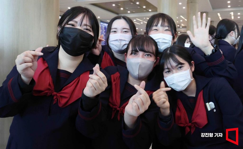 일본 구마모토현 루테루 학원 고등학교 학생들이 21일 인천국제공항을 통해 입국하고 있다. 4박5일 일정으로 한국을 찾은 일본 청소년들은 자매학교인 전주 신흥고등학교 학생들을 만나 수업을 참관한 뒤 한복을 입고 한옥마을을 둘러볼 예정이다.