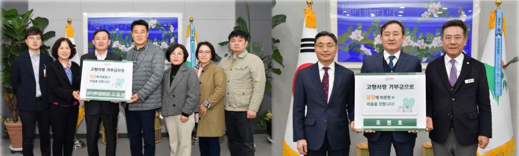 21일 군에 따르면 전 부장판사 출신 조현호 변호사가, 수완 센트럴병원의 고길석 대표원장이 고향사랑 기부금을 쾌척하며 고향사랑의 마음을 보탰다.