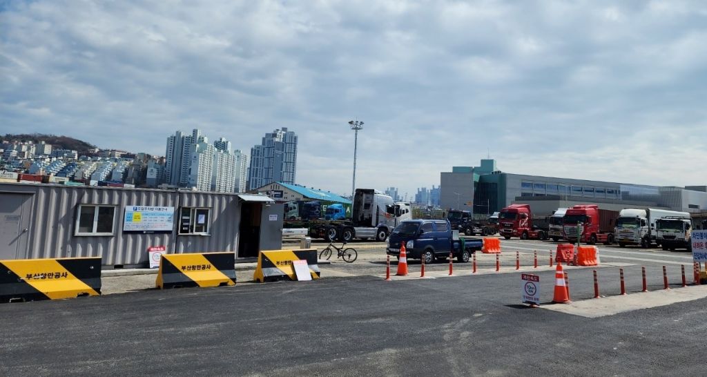 우암부두 화물차주차장 모습.