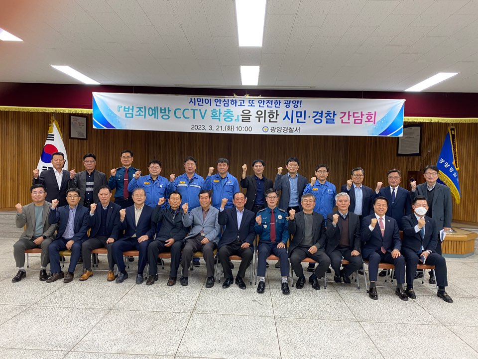 전남 광양경찰서(서장 정재봉)는 3월 21일 오전 10시 경찰서 4층 대강당에서 경찰ㆍ시민 등 35명이 참석한 가운데 치안인프라(범죄예방 CCTV) 구축을 위한 간담회를 개최했다.