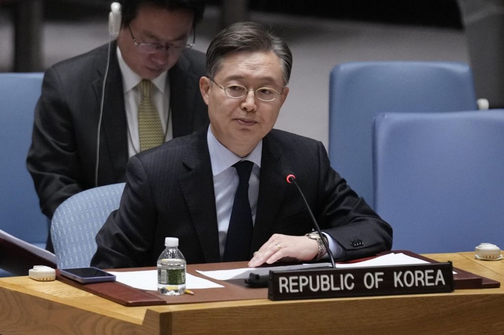 유엔 안보리 회의에서 발언하는 황준국 주유엔 한국대사 [이미지출처=연합뉴스]