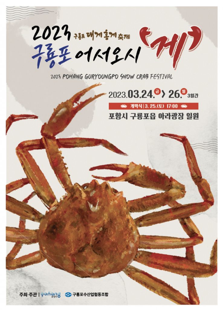 포항시는 대게 생산의 중심지, 포항 구룡포에서 대게 축제 ‘2023 구룡포 어서오시게’를 24일부터 26일까지 3일간 개최한다.