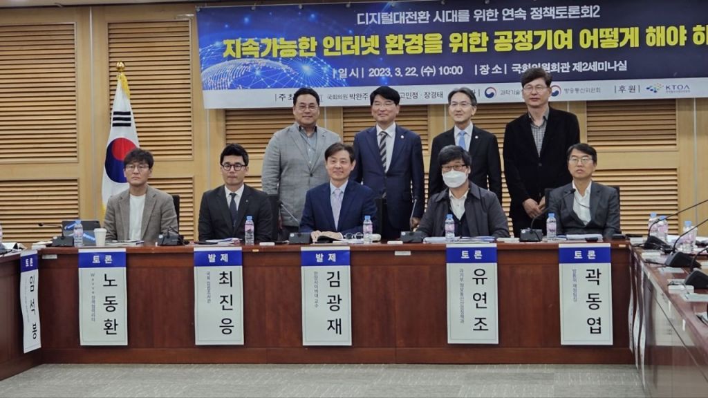 국회 과학기술정보방송통신위원회 소속 박완주·정필모·고민정·장경태 의원은 22일 국회의원회관에서 '디지털대전환 시대를 위한 연속 정책토론회 2 ? 지속가능한 인터넷 환경을 위한 공정 기여 어떻게 해야 하나?'를 개최했다.