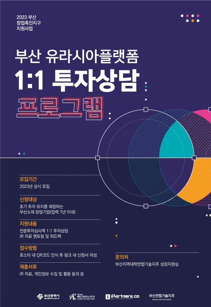 부산연합기술지주가 아이파트너즈와 ‘부산 유라시아플랫폼 1:1 투자상담 프로그램’에 참여할 부산 소재 스타트업을 모집한다.
