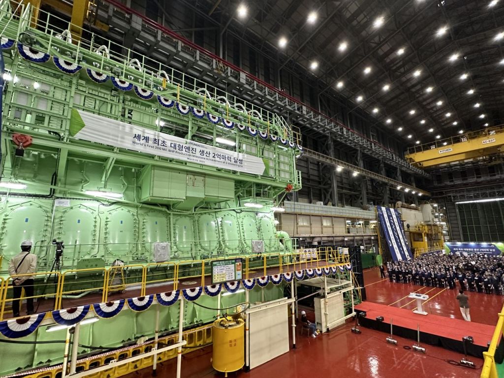 이어 그는 "초대형 메탄올 엔진 생산은 대형엔진 2억마력 생산량이라는 단순한 숫자를 넘어 친환경 엔진, 나아가 친환경 조선해양 시대의 서막을 알리는 것"이라고 했다.