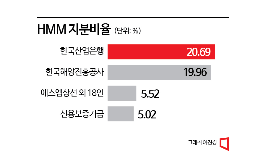가격 외에도 영구채 처리 방안, 한국해양진흥공사의 향후 입지 등도 걸림돌이다. HMM은 산은과 해양진흥공사를 상대로 2018년부터 2020년까지 2조6800억원 규모의 전환사채(CB)와 신주인수권부사채(BW)를 발행했다. 만기는 길지만 두 기관이 보유한 CB와 BW를 모두 주식으로 전환하면 이들의 지분율은 40.65%에서 74%로 올라간다.