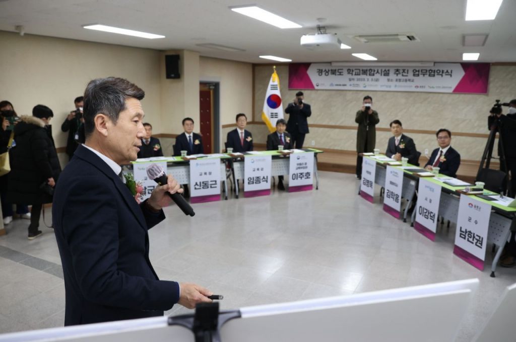 이와 함께 학령인구 감소에 따른 지역사회 소멸, 학교 통폐합 등을 해결하기 위해 학교 유휴 부지에 교육과 지역 주민 생활에 필요한 문화·체육·복지시설을 설치해 학교를 중심으로 지역사회와 유기적 연계를 맺고 공존하도록 하는 학교시설의 새로운 모델인 학교 복합화 사업을 추진하고 있으며, 이를 위해 지난 2월 교육부, 경북도, 경북도교육청 등과 업무협약을 체결했었다.