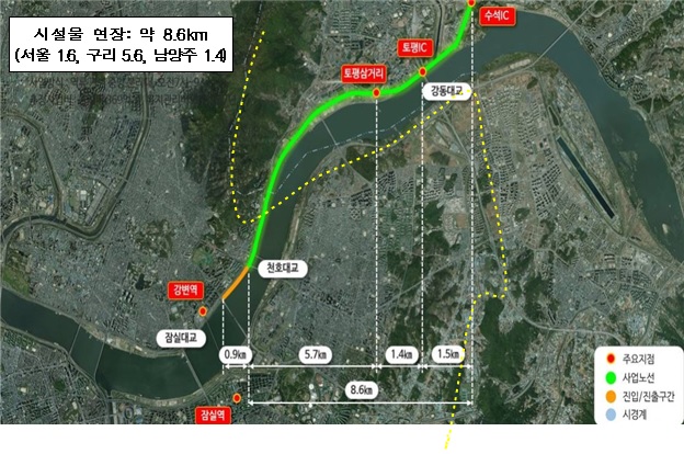 타당성 평가는 2021년 11월부터 올해 1월까지 실시됐다. 출·퇴근시간 정체가 극심한 강변북로(서울 강변역~남양주 수석IC, 8.6㎞)의 대중교통 개선을 위한 사업 추진방안에 대해 사업 가능성, 경제성(B/C) 등을 분석했다. 수도권 동북부 지역에 증가하고 있는 교통 수요에 대응하기 위해서는 도로 용량 추가 확보가 불가피하다는 판단과 함께 강변북로 도로 확장 또는 지하도로 건설 계획도 필요하다고 봤다.