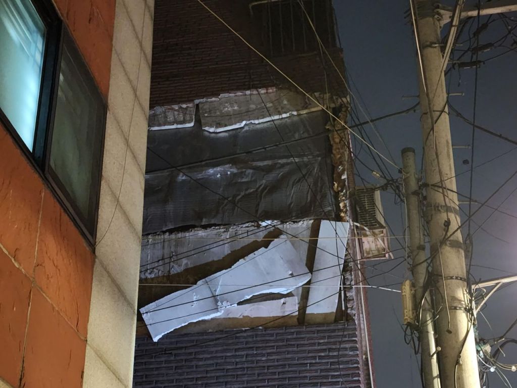 구청은 "외벽이 추가로 떨어져 나가지 않게 안전 그물망을 설치하는 등 임시 조처하고 건물 정밀 진단을 시행할 방침"이라고 밝혔다.