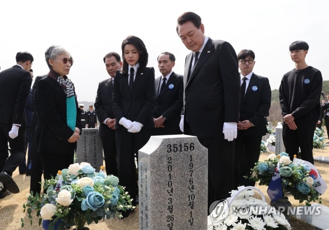 윤석열 대통령은 24일 "북한의 무력 도발에 맞서 장렬히 산화한 55명의 영웅들을 영원히 기억하겠다"고 밝혔다. 취임 후 첫 서해수호의 날을 맞아 사실상 '천안함 폭침은 북한 소행'이라는 메시지를 내놓은 것으로 윤 대통령은 천안함 순국 장병들과 생존 장병들이 피해자라는 점을 분명히 하고 국가에서 예우에 나서겠다고 약속했다.