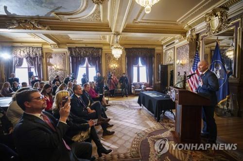 23일(현지시간) 미국 유타주 스펜서 콕스 주지사가 미성년자들의 SNS 이용을 제한하는 법안에 서명하고 있다. [사진출처=AP 연합뉴스]