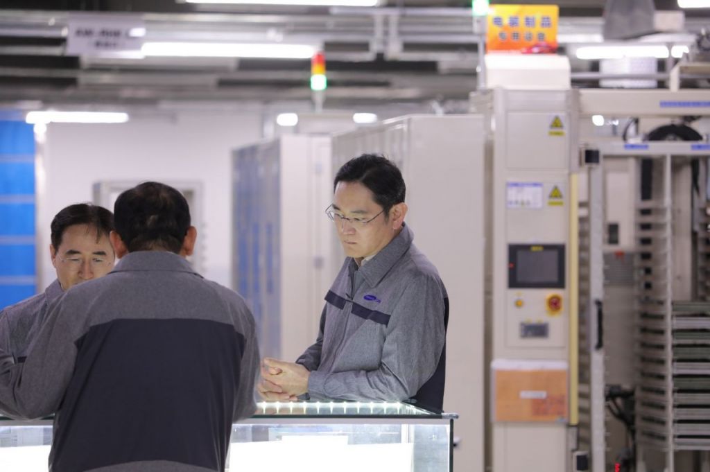 이재용 삼성전자 회장이 24일 중국 톈진에 있는 삼성전기 사업장을 방문해 MLCC 생산 공장을 점검하고 있다. / [사진제공=삼성전자]