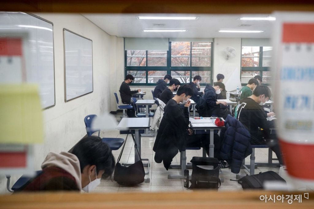 2023학년도 대학수학능력시험일인 17일 서울 종로구 경복고등학교에 마련된 시험장에서 수험생들이 시험 시작을 기다리고 있다./강진형 기자aymsdream@