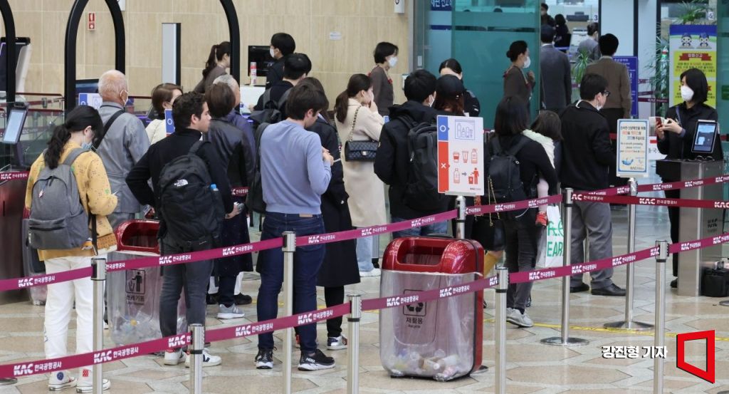 코로나19로 중단됐던 한-중 노선 운항이 재개된 가운데 27일 김포공항 국제선에서 북경·상해 노선을 이용하는 승객들이 탑승장으로 들어서고 있다.